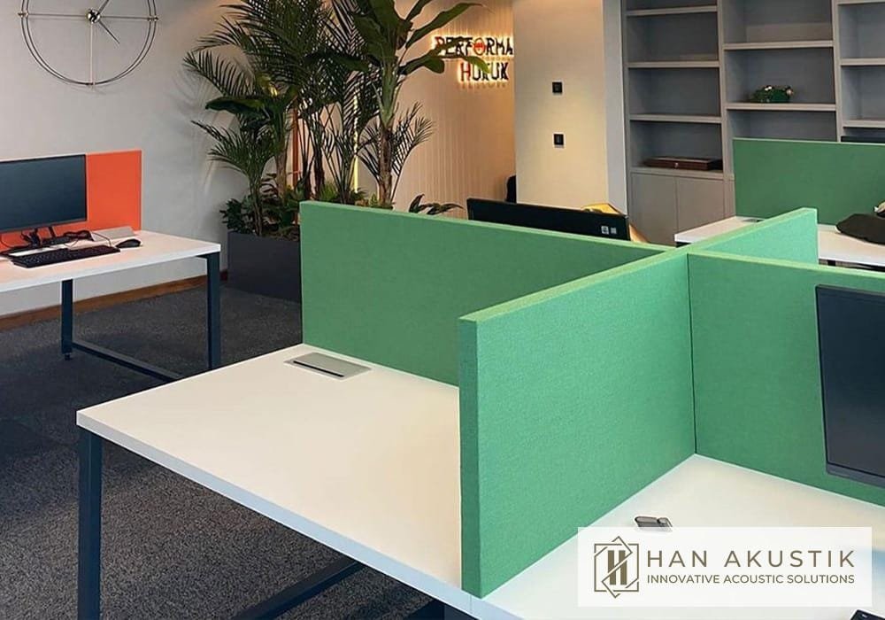 Akustik kumaş masa seperatörleri, pratik ve hızlı akustik çözümler arayanlar için mükemmel bir tercihtir. Kolay kurulumu ve montajı ile zaman kaybı olmadan ofislerinize entegre edilebilir. Aynı zamanda sesi izole ederek çalışma alanlarında sessizliği artırır. İş yerlerinde, toplantı odalarında ya da ev ofislerinde kullanılabilen bu seperatör, akustik verimlilik sağlarken, mekanlarınıza modern ve estetik bir dokunuş katar. Hızlı ve etkili çözüm arayanlar için ideal bir üründür.