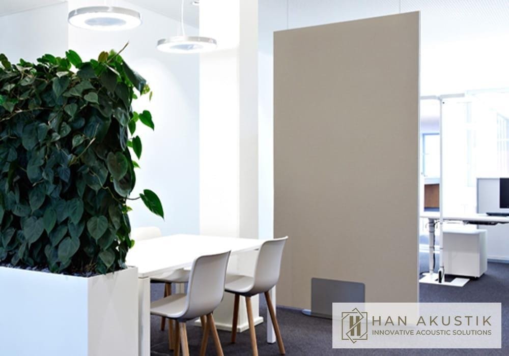 Akustik kumaş paravanlar, özel alanlar yaratmanın en etkili yoludur. Standart kesim tasarımı ile ofislerde, toplantı odalarında ve sosyal alanlarda akustik performansı artırırken, mekanın dekorasyonuna da uyum sağlar. Gürültüyü izole ederek daha sessiz ve verimli bir ortam oluşturur, aynı zamanda modern ve şık bir görünüm sağlar.